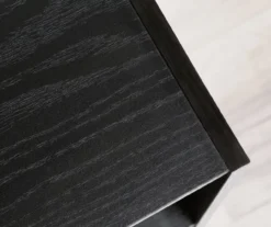 - Convenient storage cubby in a sleek black Oak finish