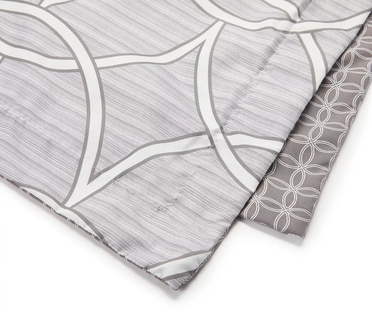 - Gray geometric pattern on reversible comforter