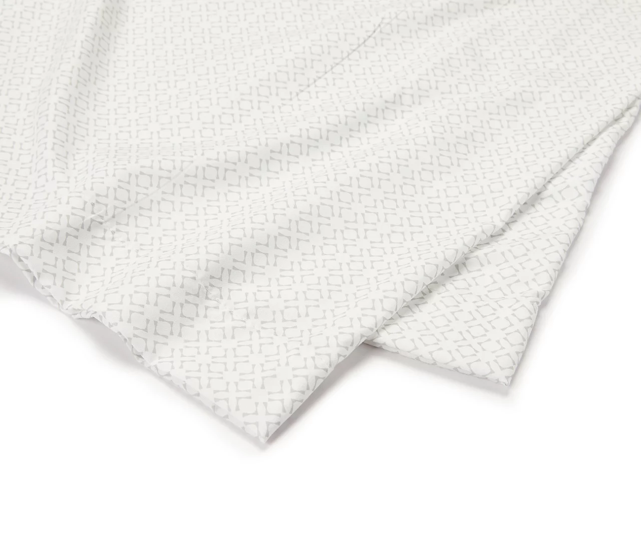 - Sheet set features gray geometric pattern