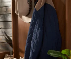 Add multifunctional style to your entryway using this Real Living Villa Park hall tree. Designed with hooks for hanging various clothes and accessories, two cubes keep clutter under control as a cushioned bench allows you to easily put on or take off shoes. Finished in a rich acorn brown hue, it’s perfect for an foyer, hallway or mudroom.